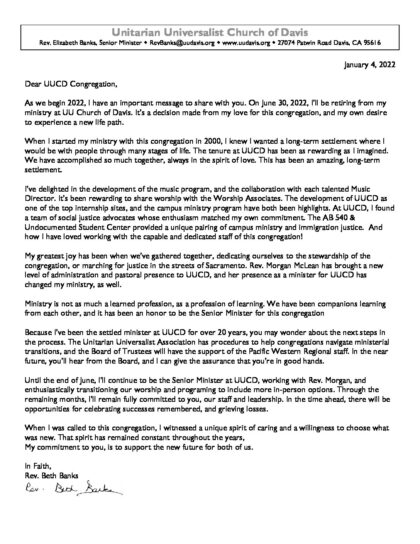 Retirement Letter 2022 Congregation